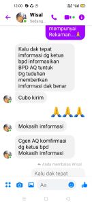 Sementara itu, Kepala Desa Air Terjun, Wisal putra, dihubungi Media ini Jumat 21/01/2022 Jam 11 53 via Mesenjer,Mengatan Kalu dak tepat imformasi dg ketua bpd informasikan